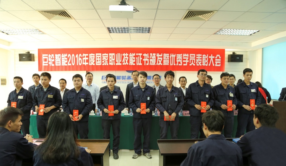 On the afternoon of 30 December, 2016 National Professional Skill Certificate and Praising Excellent Workers Meeting was held in the training center of the factory at Longgang Road. Wu Hao, the assistant of the company’s president, Hong Zebin, the general manager of the tire mold business division, Wu Yingxiong, the director of HR department, Lu Chusheng, the deputy director, Xieke Director, Chen Yixin Director, Xie Dai Director of Guangzhou Electromechanical Technology College, and 140 worker representatives of the training program attended the meeting.